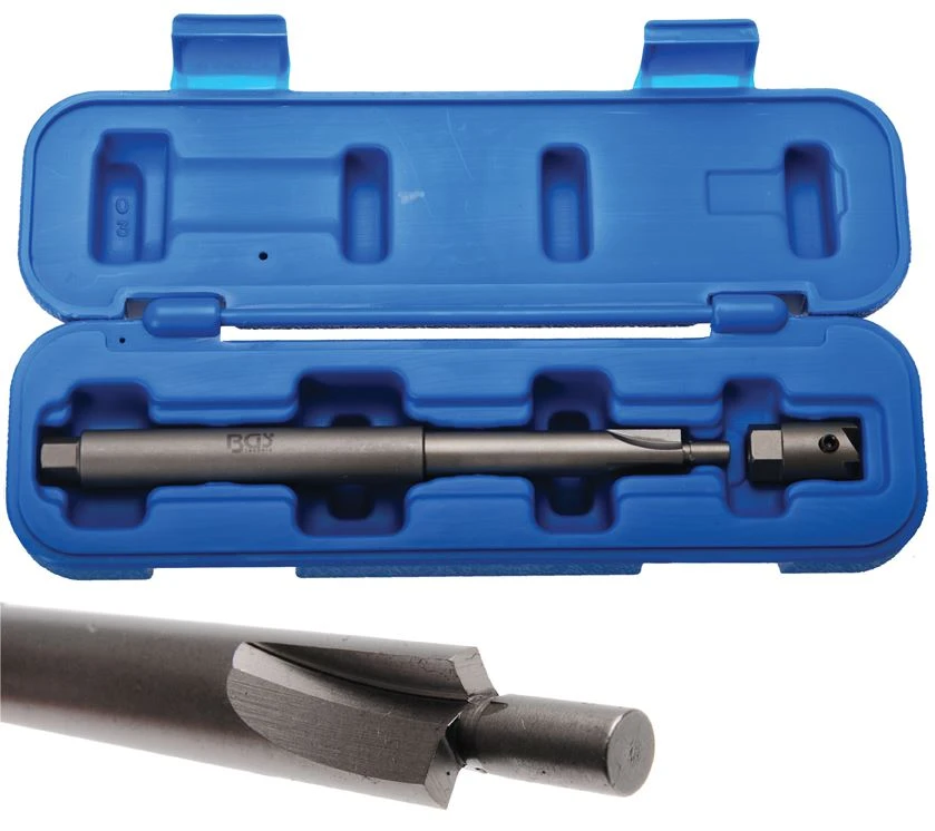 - durch Drehen von Hand unter leichtem Druck kann ein sauberer Sitz im Zylinderkopf und der Düse gefräst und der Düsenschacht gereinigt werden