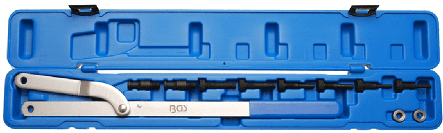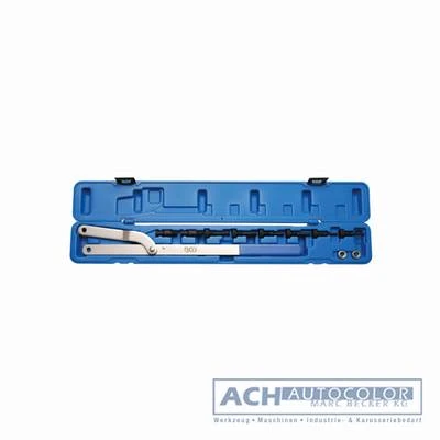 - mit 4 Paar austauschbaren Haltezapfen, Ø 6 -10 mm, 8 – 11 mm, 10 – 12 mm, 11 – 16 mm, daher für nahezu alle Nockenwellenräder geeignet.