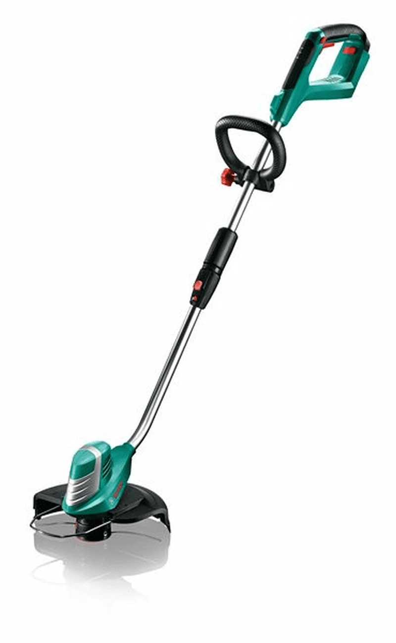 Akku-Rasentrimmer AdvancedGrassCut 36. Ohne Akku und Ladegerät. Ohne Kabel kraftvoll durch Wildwuchs und naturbelassene Rasenflächen. Zweifaden-Schneidsystem für hohe und effiziente Schnittqualität. Geringes Gewicht entlastet die Arme bei der Arbeit. Halbautomatischer Fadenvorschub für unterbrechungsfreies Arbeiten. Syneon Chip Intelligente kontrollierte Energie für jedes Projekt. Zusatzgriff in Position und Winkel verstellbar für angenehmes Trimmen in jeder Arbeitsposition. Verlängerter Softgrip bietet bequeme Griffpositionen entsprechend der Körpergröße der jeweiligen Anwender. Pflanzenschutzbügel für präzises und schonendes Trimmen rund um Pflanzen. Fadenspule 6 m (F 016 800 351)