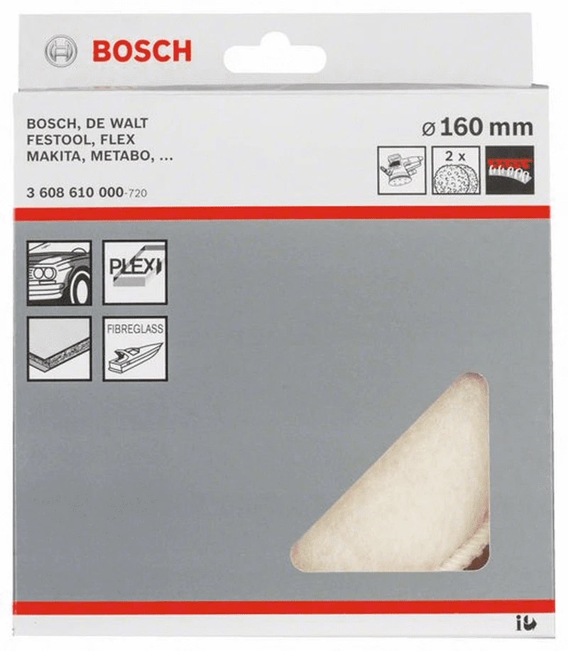 BOSCH Professional Lammwollhaube für Exzenterschleifer, 160 mm, Klett, 2er-Pack 3608610000