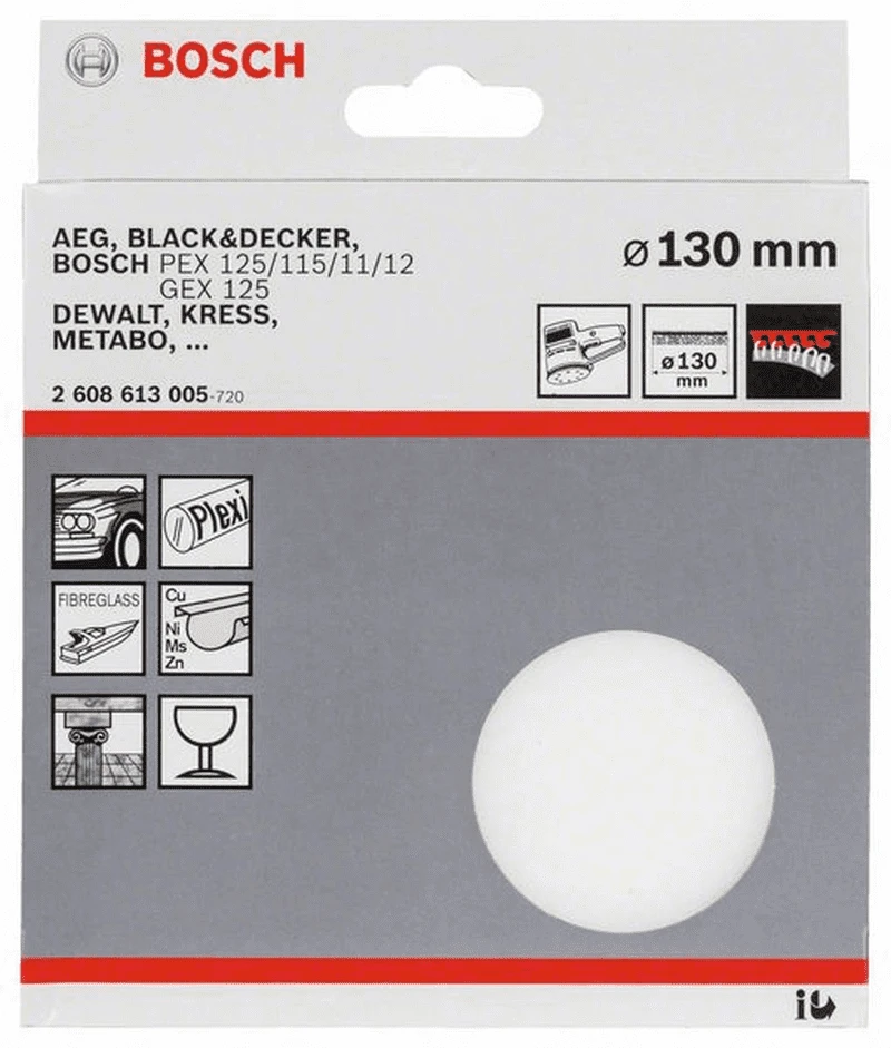 BOSCH Professional Polierschwamm für Exzenterschleifer, Klett, 130 mm 2608613005