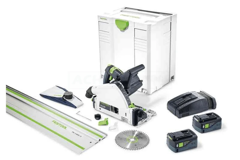 2 x Akkupack BP 18 Li 5,2 ASI, Schnellladegerät SCA 8, HW Feinzahn-Sägeblatt W48, Führungsschiene FS 1400/2, Splitterschutz, Sichtfenster, Staubfangbeutel, Bedienungswerkzeug, im SYSTAINER SYS 5 T-LOC