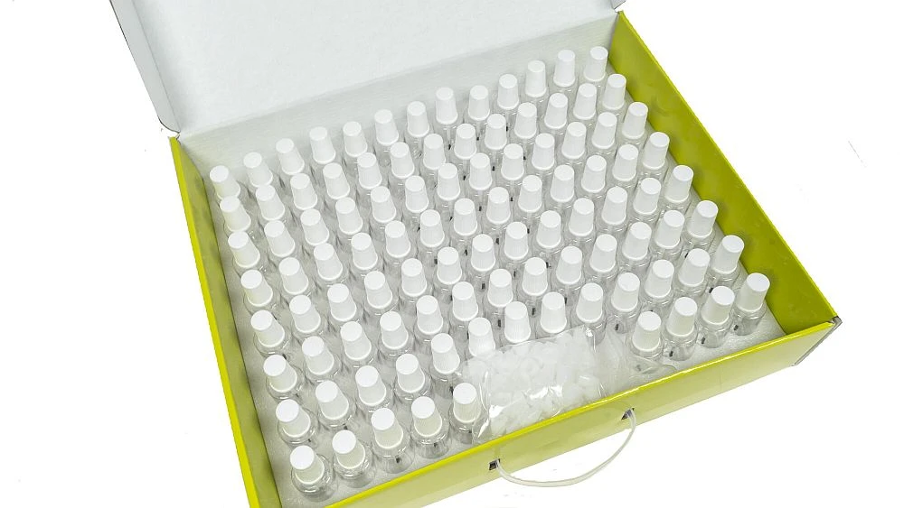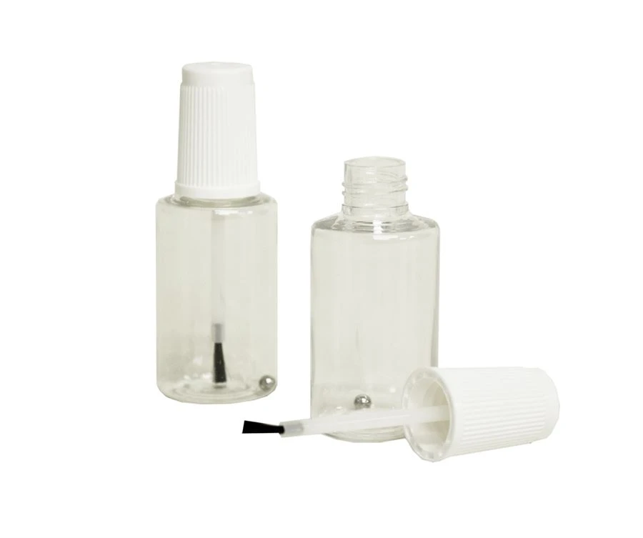- Kunststofffläschchen mit Schraubdeckel und Pinsel, 20ml. oder 50 ml Inhalt.