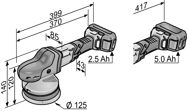 - Akku-Kapazität 2,5 / 5,0 Ah