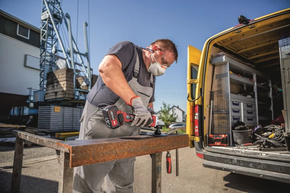 - Ergonomische Arm-Arbeitshaltung durch schräg montierten Seitenhandgriff