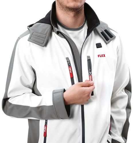 - Beheizbare, hochwertige Softshelljacke mit komfortablem Fleece-Futter, diversen Taschen und abnehmbarer Kapuze