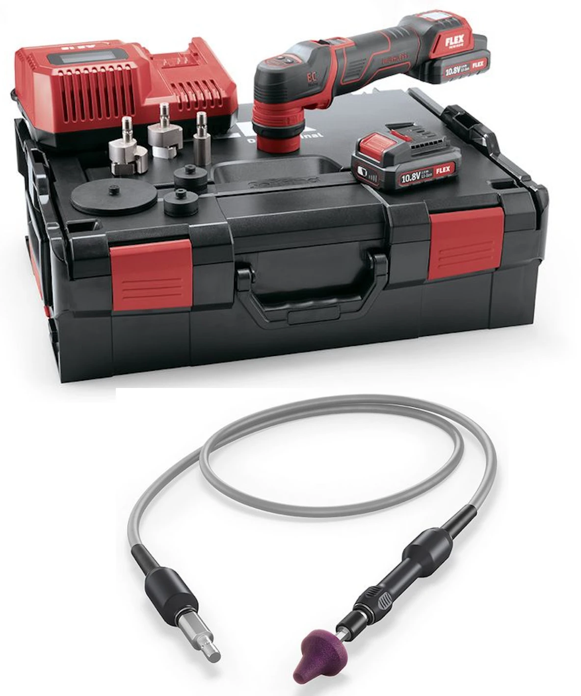 - Akkupacks 2.5/4.0/6.0 Ah – Kombinierbar mit allen 10.8 V FLEX Geräten