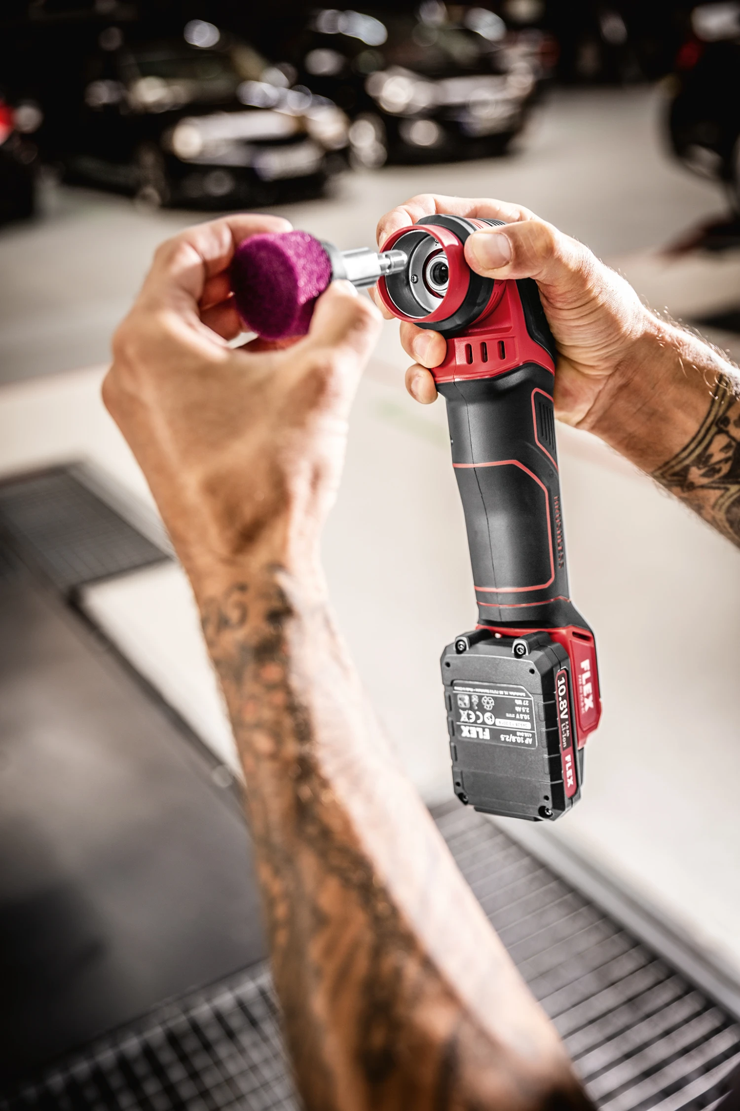 - Akkupacks 2.5/4.0/6.0 Ah – Kombinierbar mit allen 10.8 V FLEX Geräten