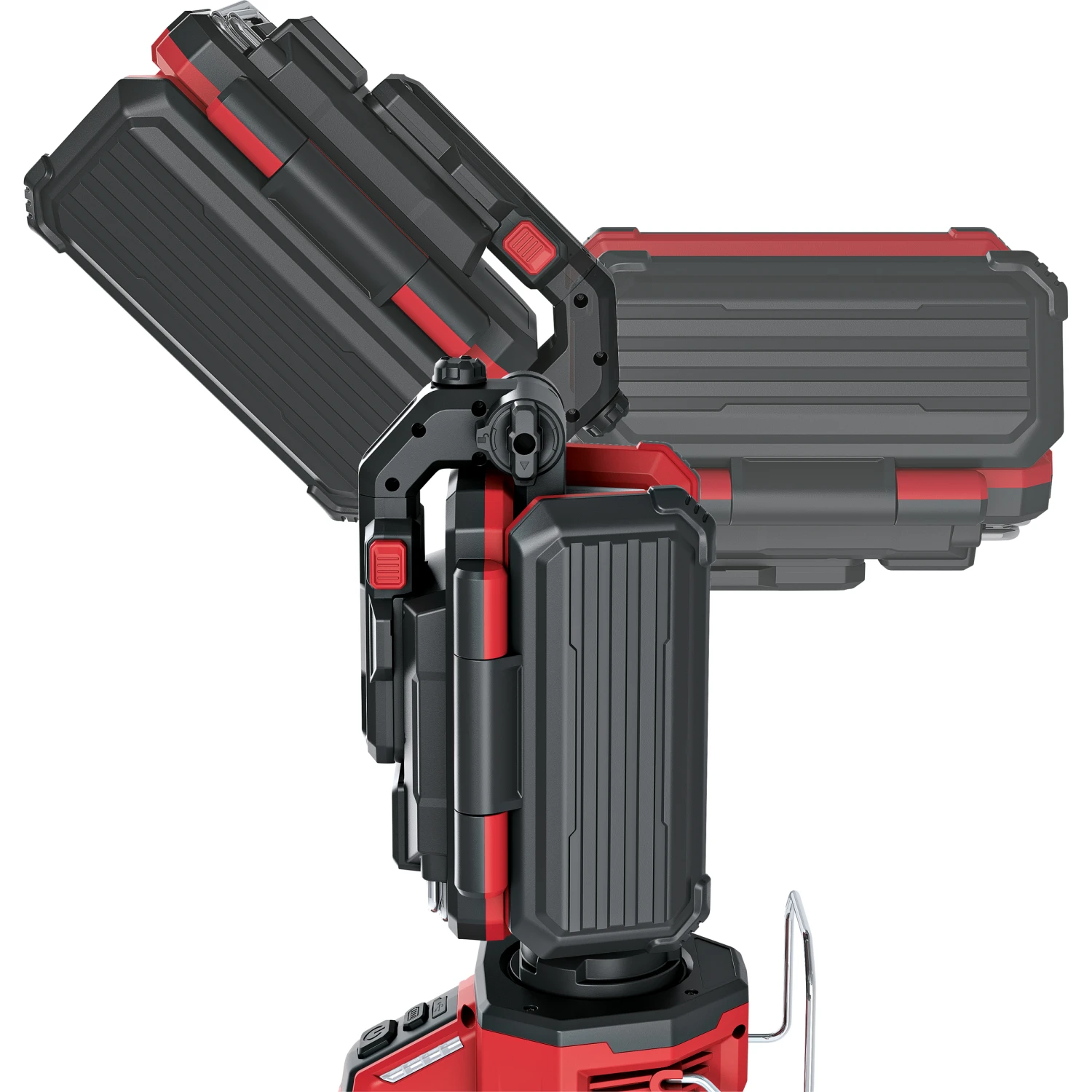 Haken oder auf Stativ montiert - Die drei Panels der Leuchte mit zwei Drehachsen ermöglichen eine freie