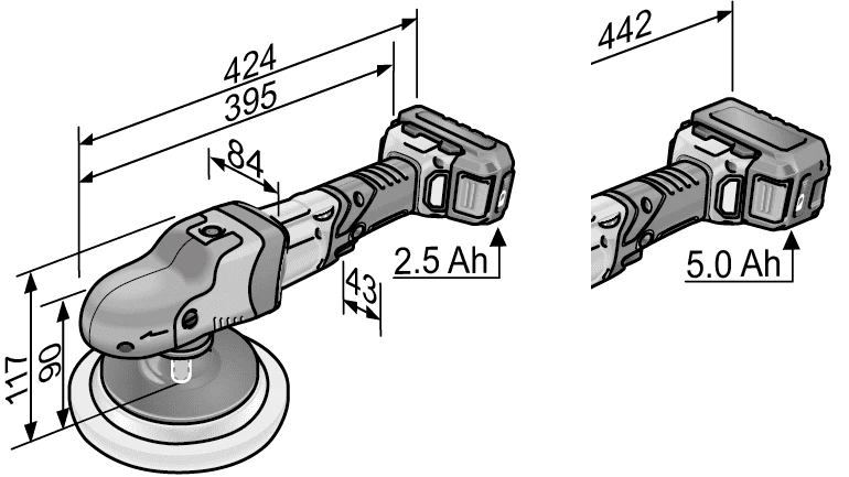 - Poliert mit niedrigen Touren und hohem Drehmoment z.B. für wärmeempfindliche Oberflächen