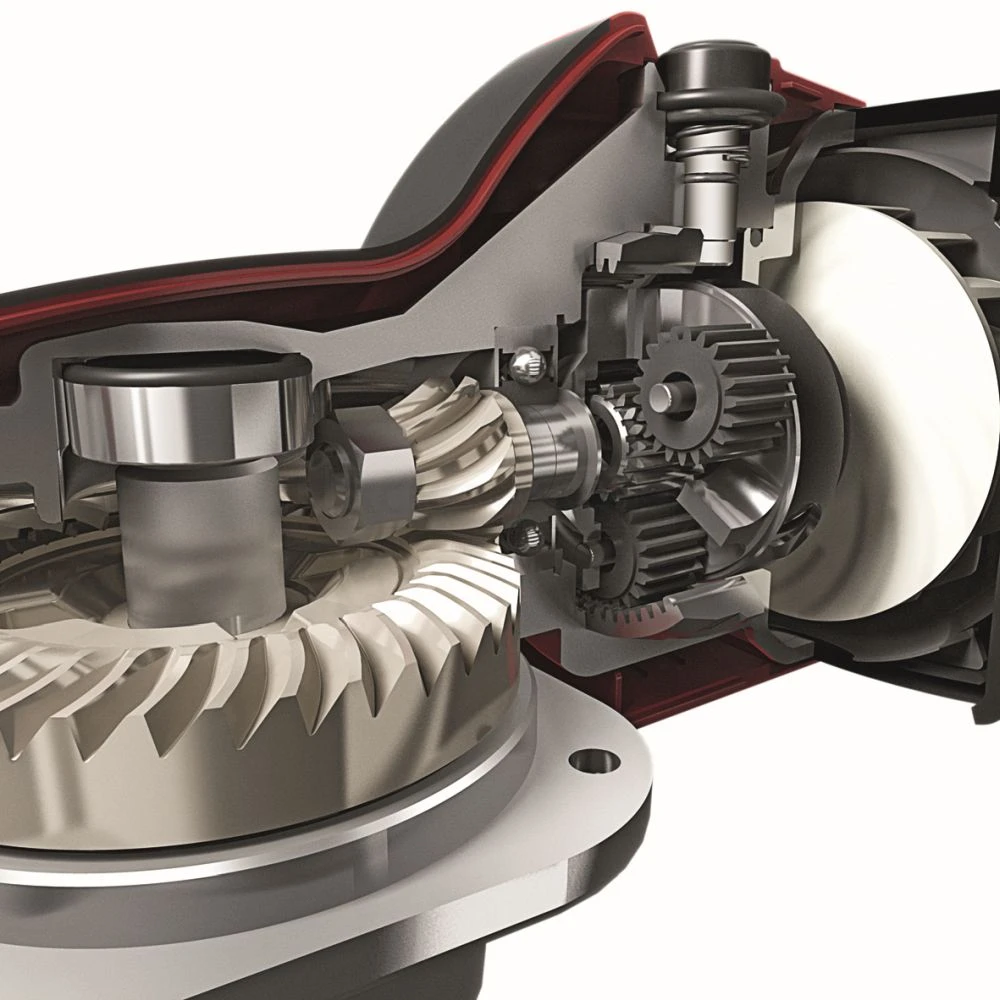 - Neuartige Kombination von Planeten- und Winkelgetriebe sorgt für extreme Geräuschreduzierung