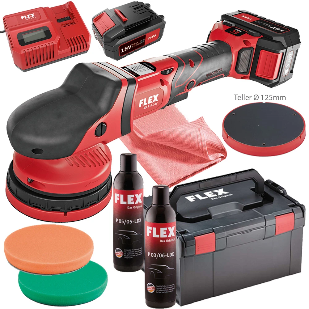 FLEX XCE 8 125 18.0 EC 5.0 P Set Akku Exzenterpolierer 461.245 Poliermaschine ersetzt XC 3401 322008