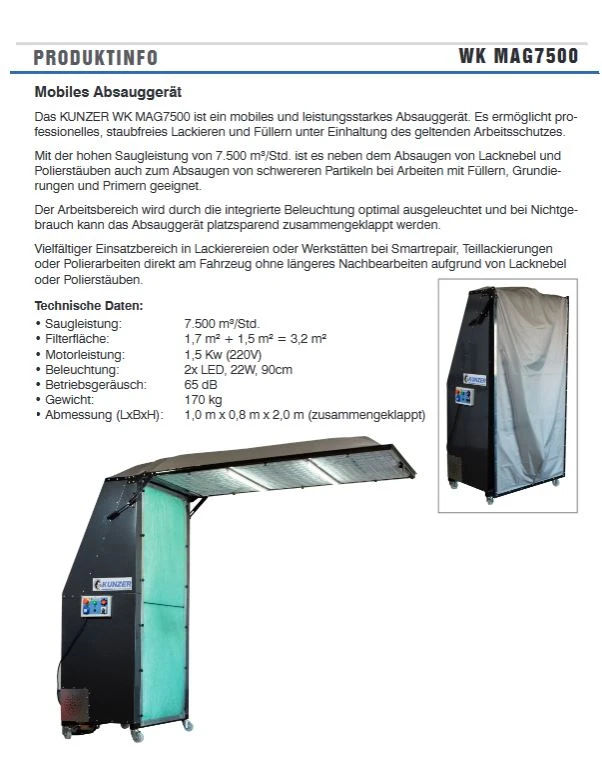 KUNZER Lackieranlage / mobiles Absauggerät WK MAG7500