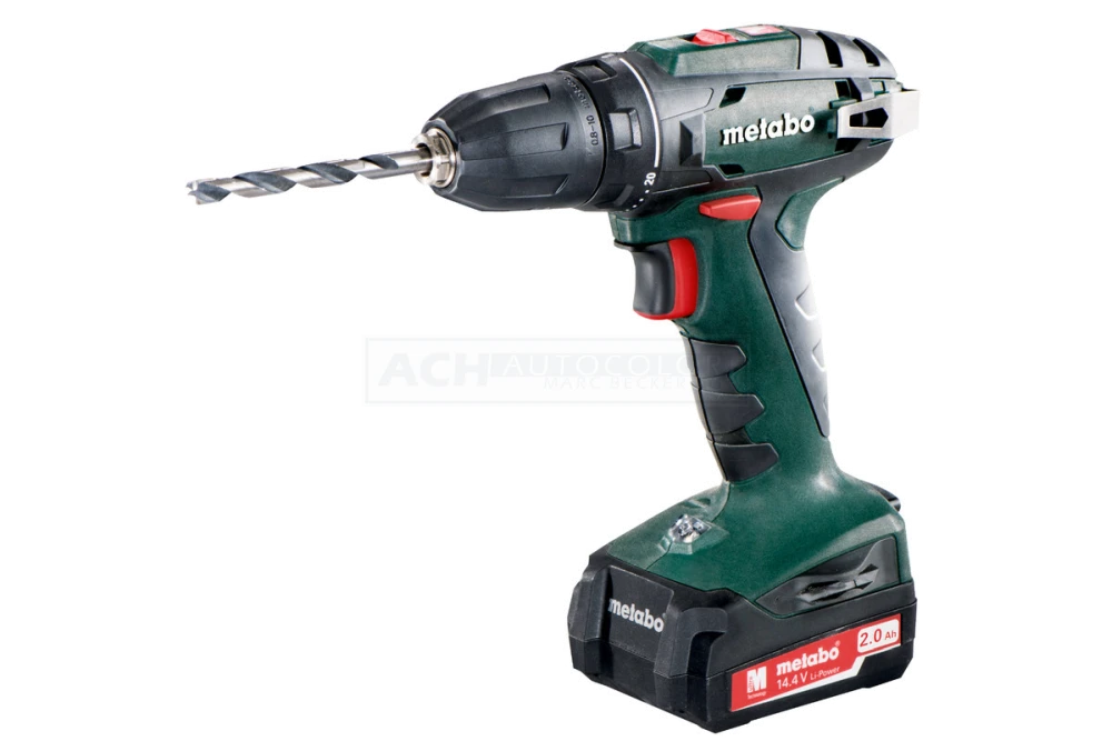 Schnellspannbohrfutter, Gürtelhaken, Li-Power Akkupack (14,4 V/2,0 Ah), Ladegerät SC 30, Kunststoffkoffer