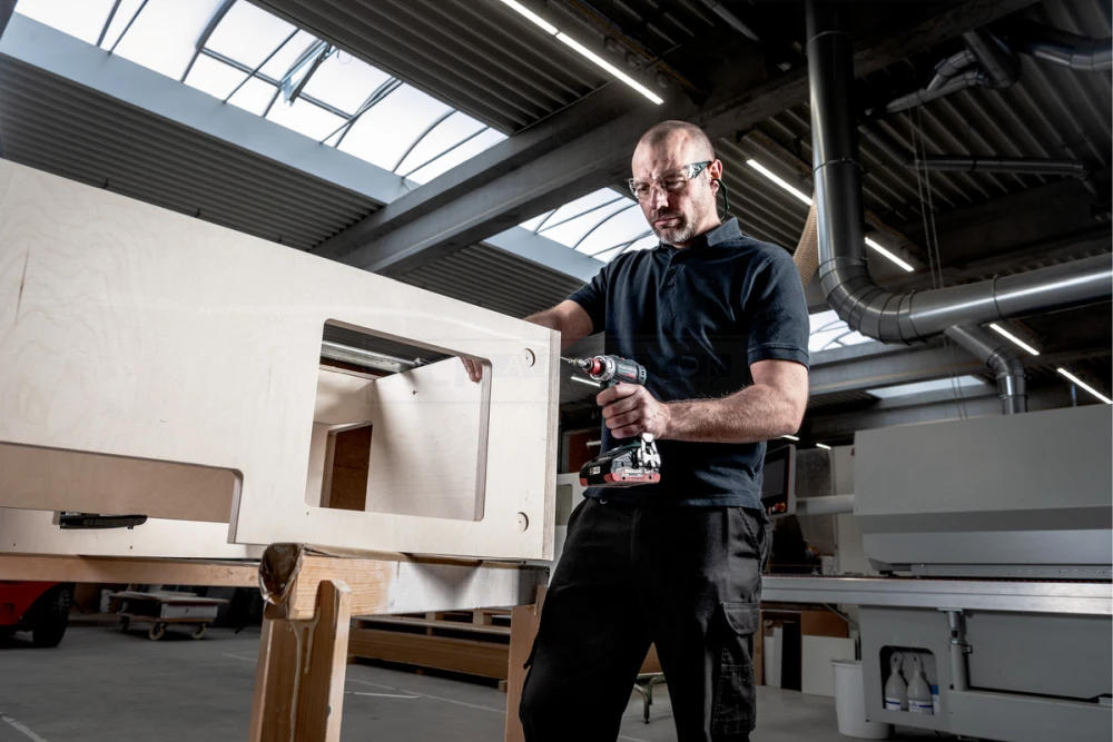 Integriertes LED-Arbeitslicht mit Nachleuchtfunktion für optimale Helligkeit im Arbeitsbereich