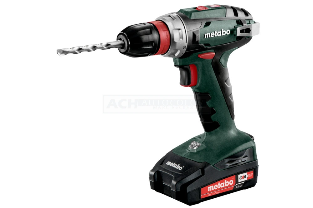 Schnellwechselbohrfutter, Gürtelhaken, 2 Li-Power Akkupacks (18 V/2,0 Ah), Ladegerät SC 30, Kunststoffkoffer