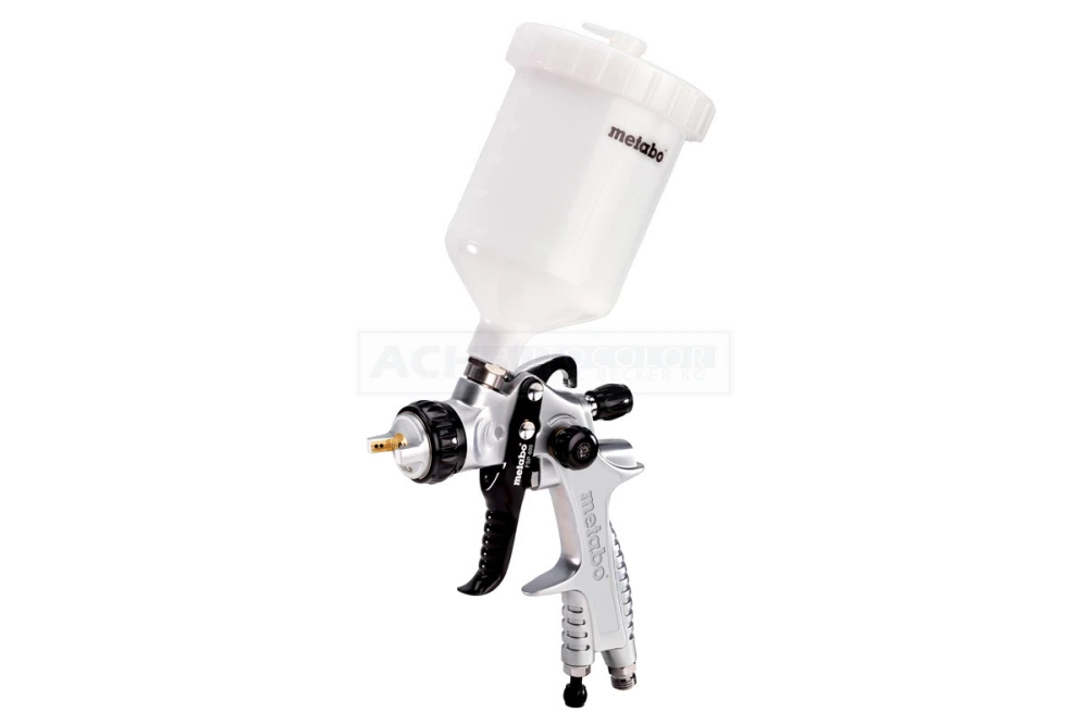HVLP (High Volume, Low Pressure): min. Arbeitsdruck 0,7 bar am Düsensatz, Übertragungsrate ca. 70%. Geringer Overspray, maximale Transfereffizienz bei geringem Luftverbrauch