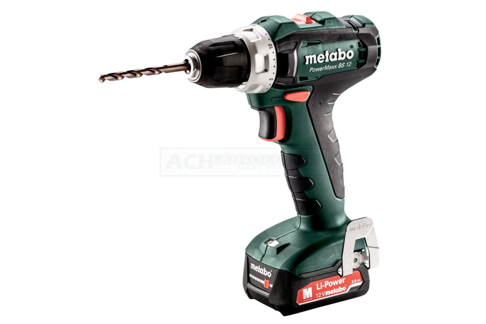 Schnellspannbohrfutter, Gürtelhaken und Bitdepot, 2 Li-Power Akkupacks (12 V/2,0 Ah), Ladegerät SC 30, Kunststoffkoffer
