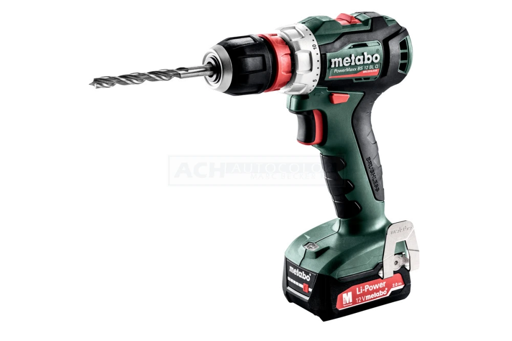 Schnellwechselbohrfutter, Gürtelhaken und Bitdepot, 2 Li-Power Akkupacks (12 V/2,0 Ah), Ladegerät SC 30, Kunststoffkoffer