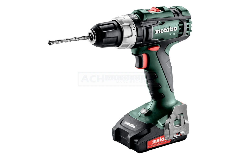 Schnellspannbohrfutter, Gürtelhaken und Bitdepot, 2 Li-Power Akkupacks (18 V/2,0 Ah), Ladegerät SC 30, Kunststoffkoffer