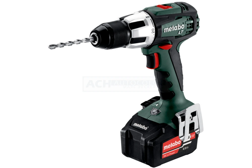 Schnellspannbohrfutter, Gürtelhaken und Bitdepot, 2 Li-Power Akkupacks (18 V/4,0 Ah), Ladegerät ASC 55 „AIR COOLED“, Kunststoffkoffer