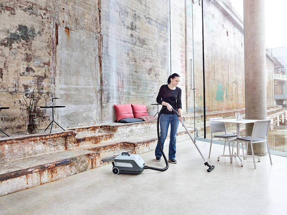 Sehr niedriger Geräuschpegel mit 60 dB(A) ermöglicht Benutzung des Saugers während der Geschäftszeiten.