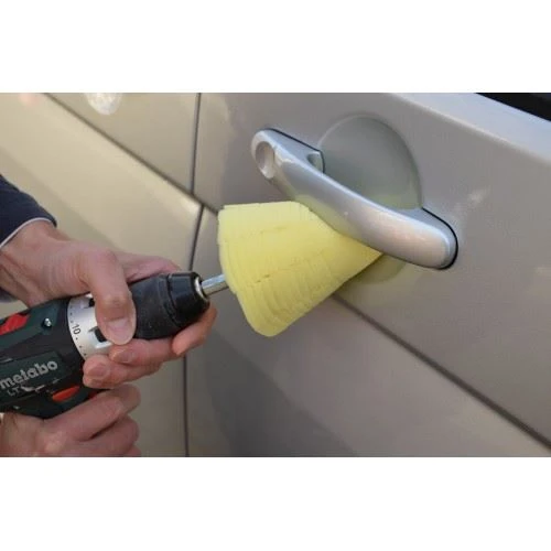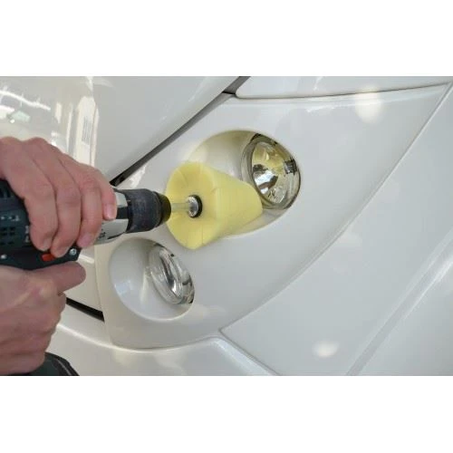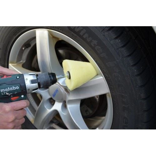 Der ROTWEISS Polierkegel eignet sich optimal zum Polieren von Teilen mit starken Vertiefungen wie Felgen, Kühlergrill, Türgriffe und ähnliches. Der Lamellenschnitt des Schaumstoffes sorgt für eine bessere Anschmiegbarkeit an die Oberfläche und verhindert das Spritzen des Poliermittels.