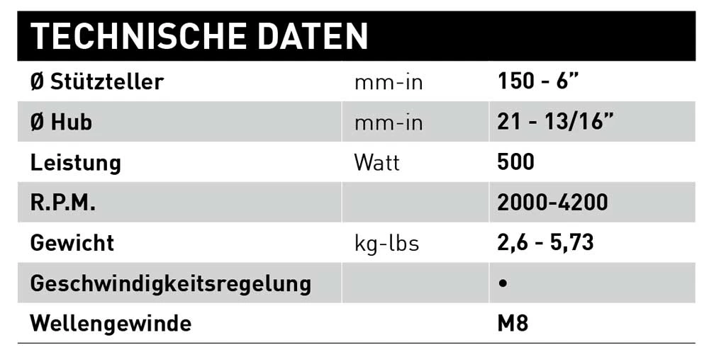 – Bis zu 21 mm Schwingkreis für schnellen Glanz und Farbtiefe.