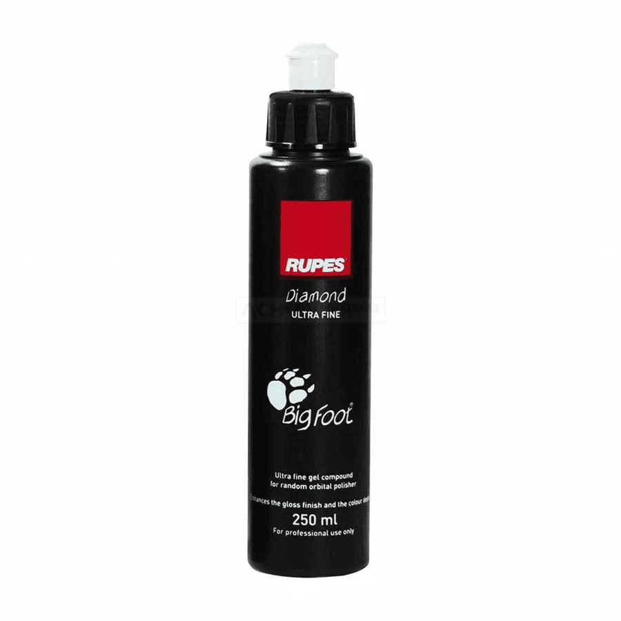 Verwenden Sie Diamond Ultra-Fine Polish auf Ihrem bevorzugten BigFoot-Orbitalpolierer, wann immer Sie den höchstmöglichen Glanz für Ihre gehärtete oder Fabrikfarbe wünschen. Diamant erzeugt den höchstmöglichen Glanz durch mechanische Einwirkung und ist nur für die Verwendung mit RUPES Ultra-Fine White Foam Pads vorgesehen.
