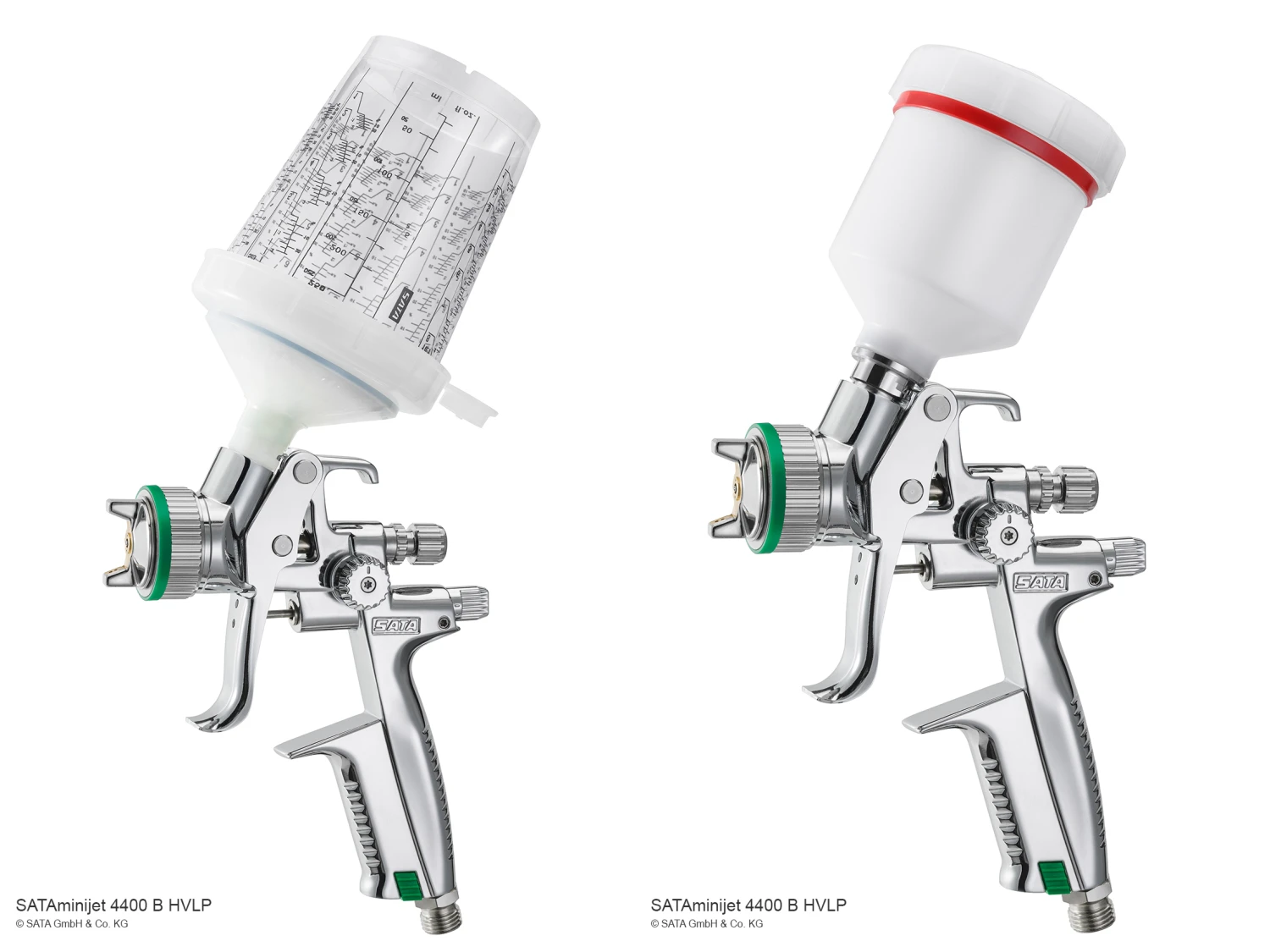 Mit der SATAminijet 4400 B können alle drei RPSRPS = Rapid Preparation System – Einwegbechersystem für die effektive Verarbeitung von Lack. Das System eignet sich zum Mischen, Lackieren, Nachfüllen und Lagern – und muss nach Gebrauch nicht gereinigt werden.Das SATA RPS ist in den Größen 0,3 l, 0,6 l und 0,9 l verfügbar und passt direkt ohne störende Adapter auf folgende Pistolentypen: