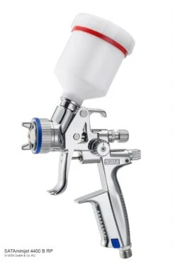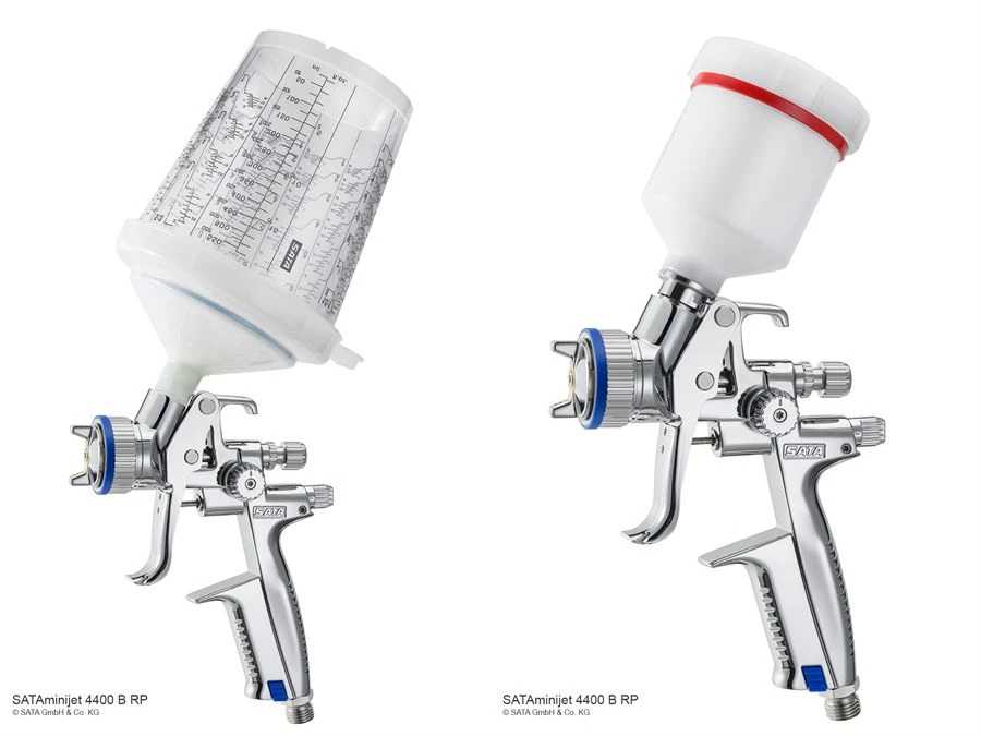 Mit der SATAminijet 4400 B können alle drei RPSRPS = Rapid Preparation System – Einwegbechersystem für die effektive Verarbeitung von Lack. Das System eignet sich zum Mischen, Lackieren, Nachfüllen und Lagern – und muss nach Gebrauch nicht gereinigt werden.Das SATA RPS ist in den Größen 0,3 l, 0,6 l und 0,9 l verfügbar und passt direkt ohne störende Adapter auf folgende Pistolentypen: