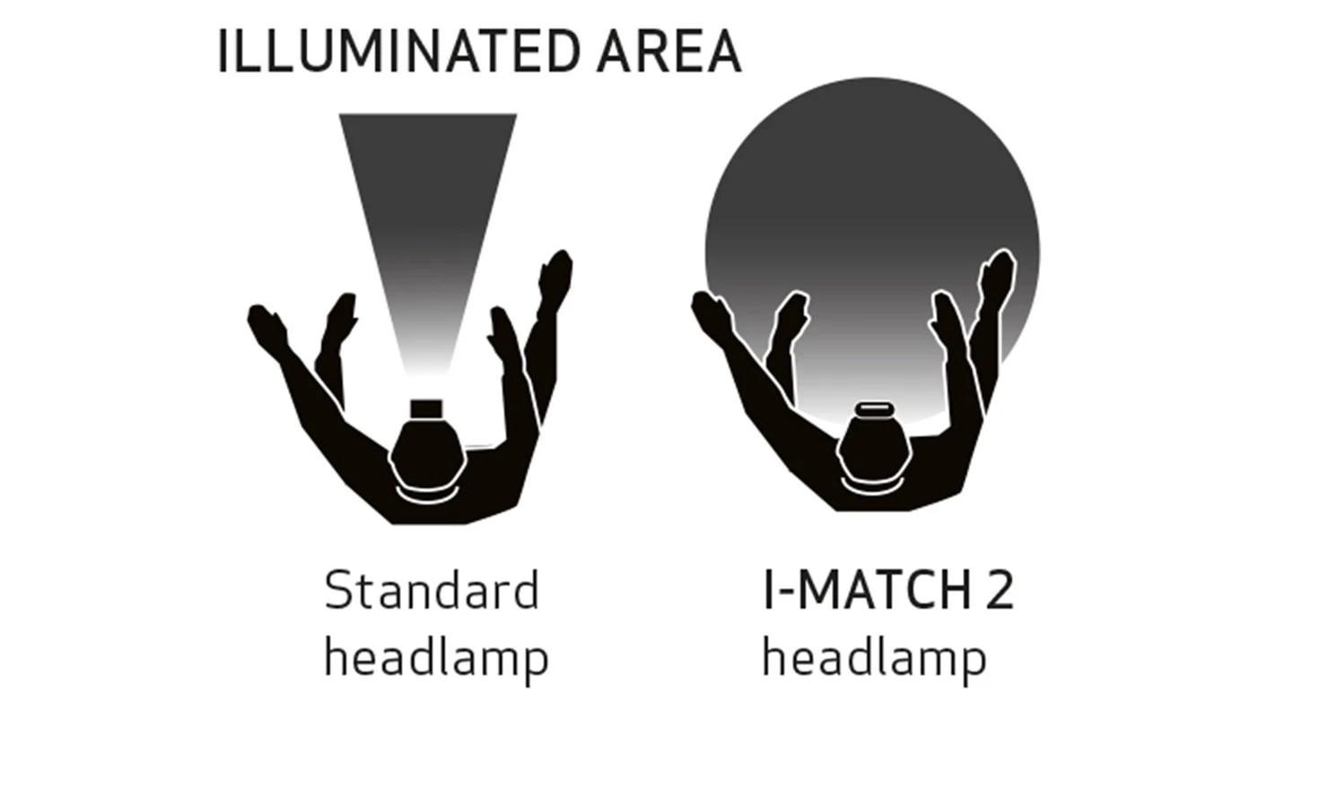 Mit neuester COB LED-Technologie sorgt die aufladbare I-MATCH 2 stirnlampe für eine äußerst leistungsfähige Beleuchtung mit größtmöglicher, gleichmäßiger Lichtverteilung und leuchtet Ihr gesamtes Blickfeld aus.