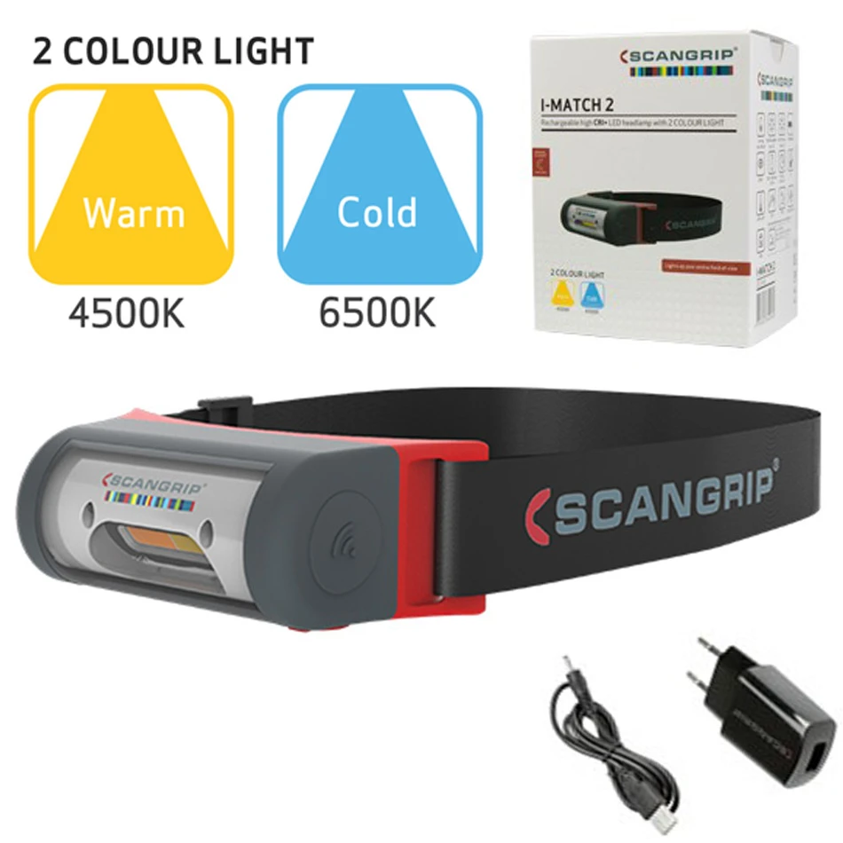 SCANGRIP I-MATCH 2 HEADLAMP Akku Ultra helle CRI + COB LED Stirnlampe für die Detaillierung und Farbabstimmung 80/160 Lumen 03.5446 03.5446