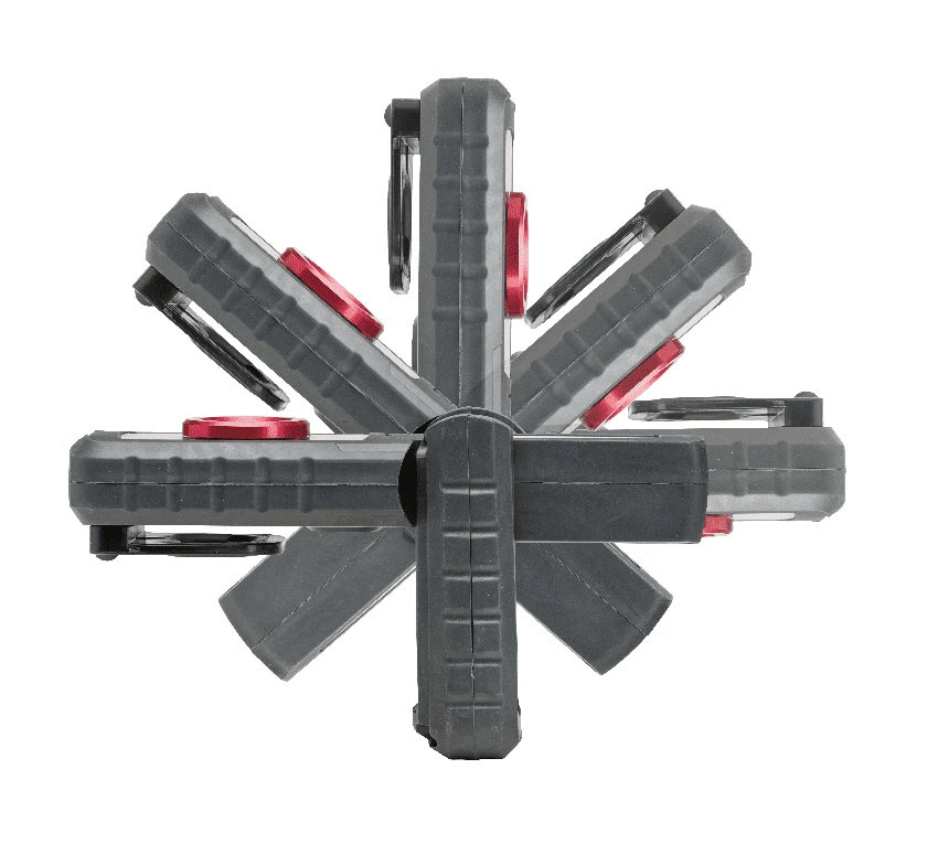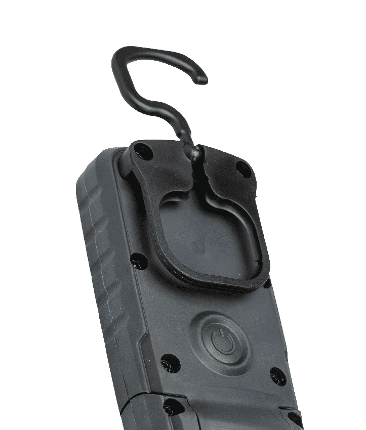 Beliebige Positionierung der Leuchte bei Untersuchungen mit dem robusten, drehbaren Haken oder dem starken eingebauten Magnet. Der flexible Leuchtenkopf ist bis 180° schwenkbar. Robuste Konstruktion, staub- und wasserdicht, IP65. Mit lösungsmittelbeständiger Glaslinse.