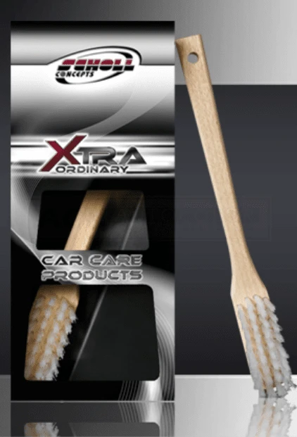 Bewährte und robuste Holzbürste zum Reinigen, Entstauben und Entfusseln von Schaumstoff- und Woll-Polierscheiben.
